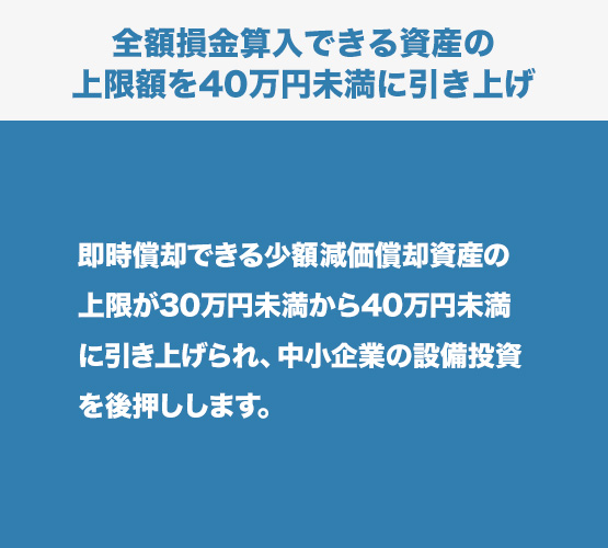 全額損金算入できる資産の上限額を40万円未満に引き上げ